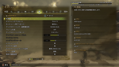 次に5K出力に対応する環境でのプレイを想定し、カスタム設定で5K/60fpsでプレイしてみた。