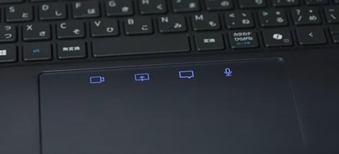 オンライン会議向けに「コラボレーションタッチパッド」を装備している点も見逃せない。ZoomとMicrosoft Teamsに対応しており、タッチパッド上の光るアイコンをタッチすることで、マイクのミュート、カメラのオン/オフ機能、画面共有やチャット表示/非表示がワンタッチで行なえる。