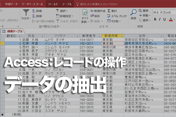 Accessのテーブルでデータをフィルターで抽出する/フィルターを解除する方法