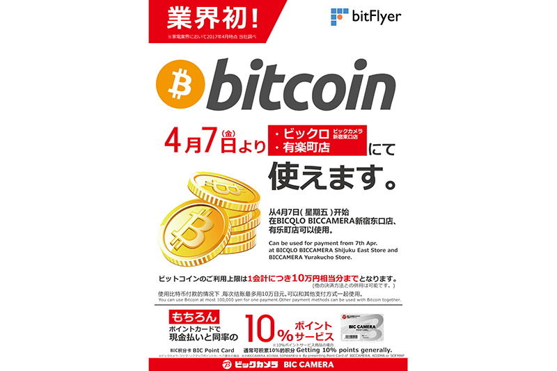 ビックカメラ、仮想通貨「ビットコイン」での決済に対応