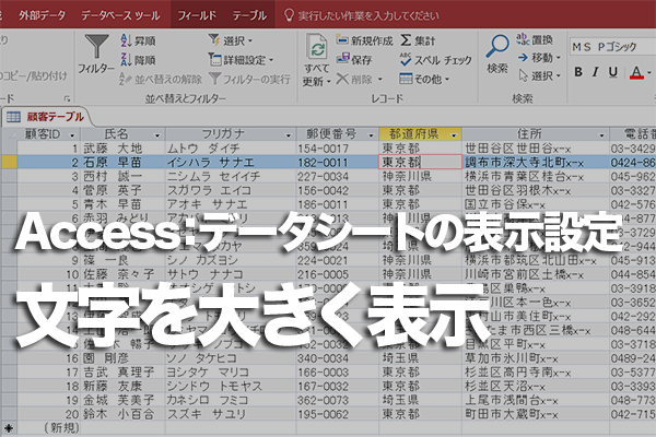 Accessでテーブルの文字を大きくしたり配置を変えたりする方法