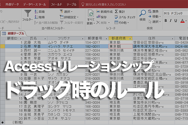 Accessでリレーションシップを設定するとき、フィールドをドラッグする方向に決まりはある?