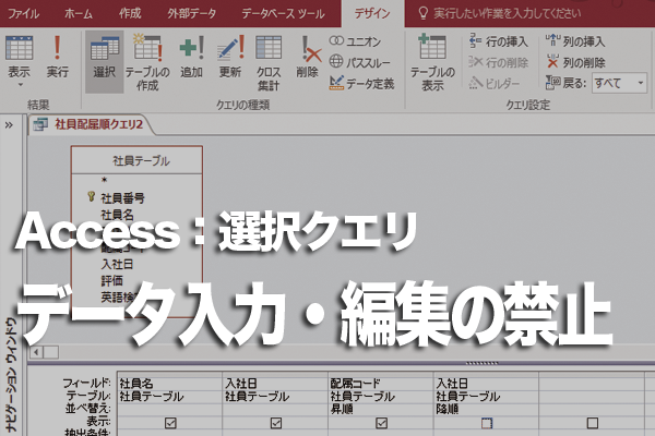 Accessの選択クエリのデータシートビューでデータの入力・編集を禁止する方法