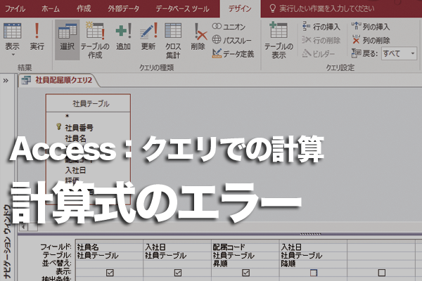 Accessのクエリの演算フィールドでエラーが出て式が確定できないときの対処方法