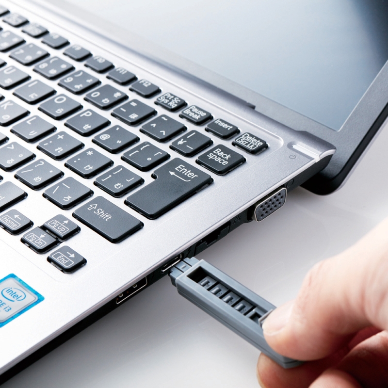 USBと有線LANを物理的に塞ぐ「ポートブロッカー」。取り外しには専用キーが必要