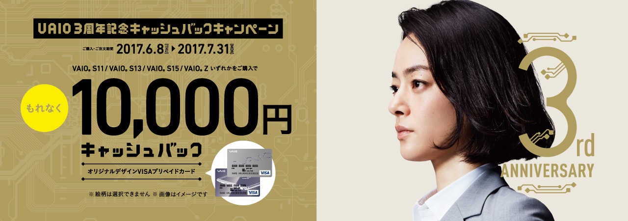 VAIO設立3周年記念、VAIOノート購入で10,000円キャッシュバック