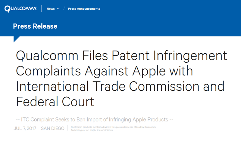 Qualcomm、iPhoneの特許侵害でAppleを提訴。販売差し止めを要求