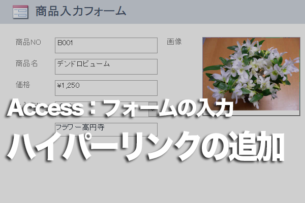 Accessのフォームでハイパーリンク型のフィールドにデータを追加する方法