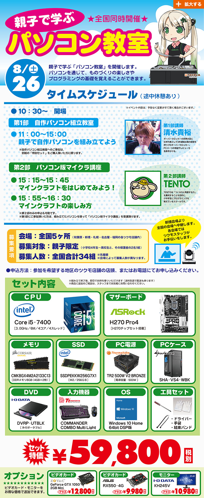 ツクモ、親子で学ぶパソコン教室を全国5カ所で開催