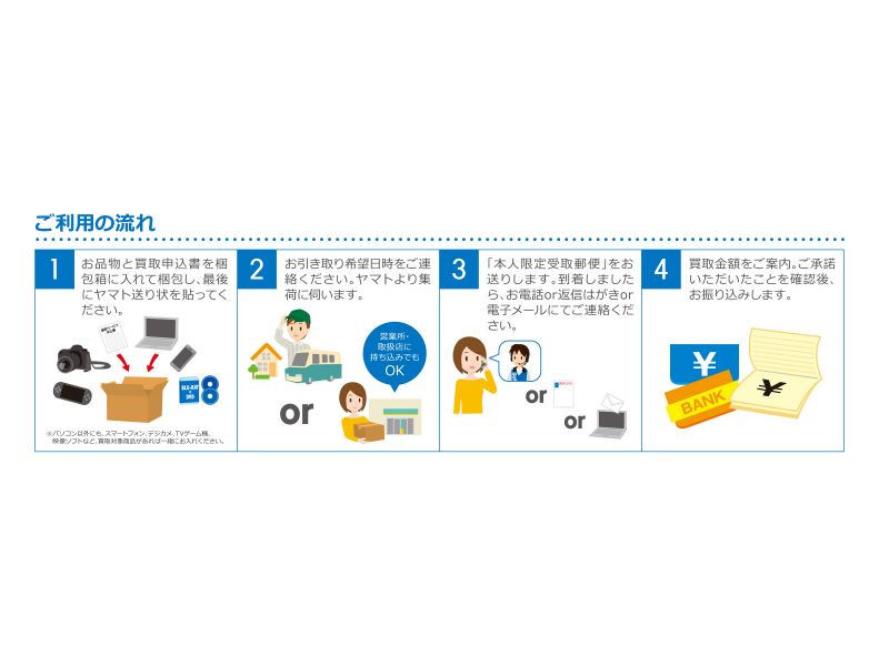 ビックカメラ、梱包材/申込用紙/宅配便送り状などがひとまとめになったノートPC買い取りサービス