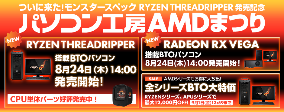 パソコン工房でRyzen搭載BTO PCが最大12,000円引きされる“AMDまつり”が開催