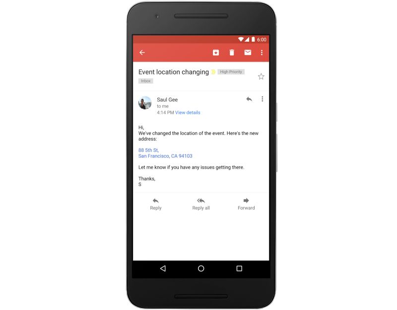 Gmailで文中の住所や電話番号に自動的にリンク