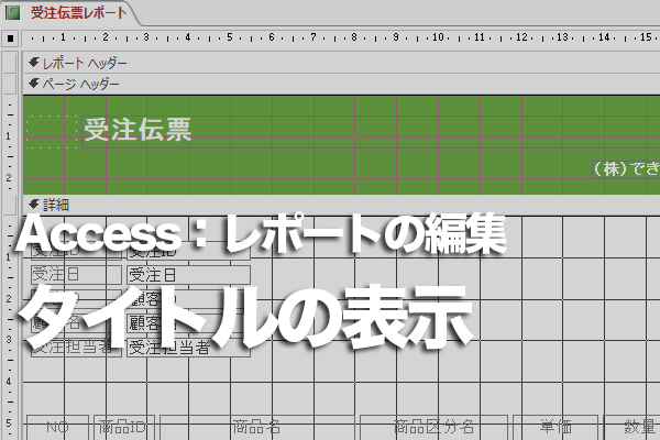 Accessのレポートヘッダーにタイトルを表示するには