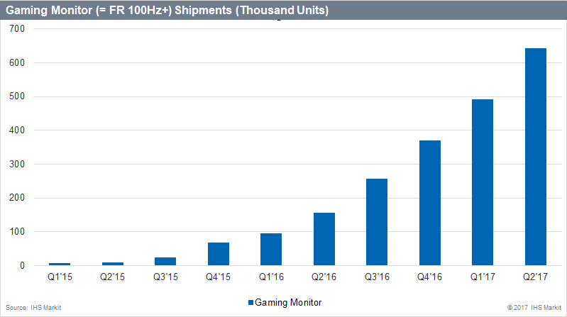 ゲーミングディスプレイの出荷数、対前年4.5倍の大幅増