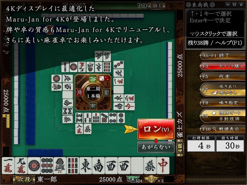 オンライン麻雀ゲームの高解像度版「Maru-Jan for 4K」公開
