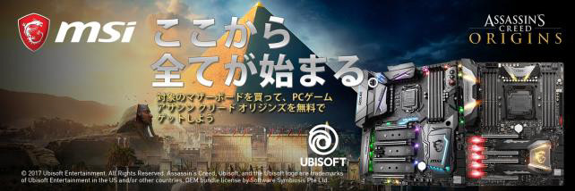 MSI、Intel Z370/X299マザー購入でAssassin's Creed Originsがもらえるキャンペーン