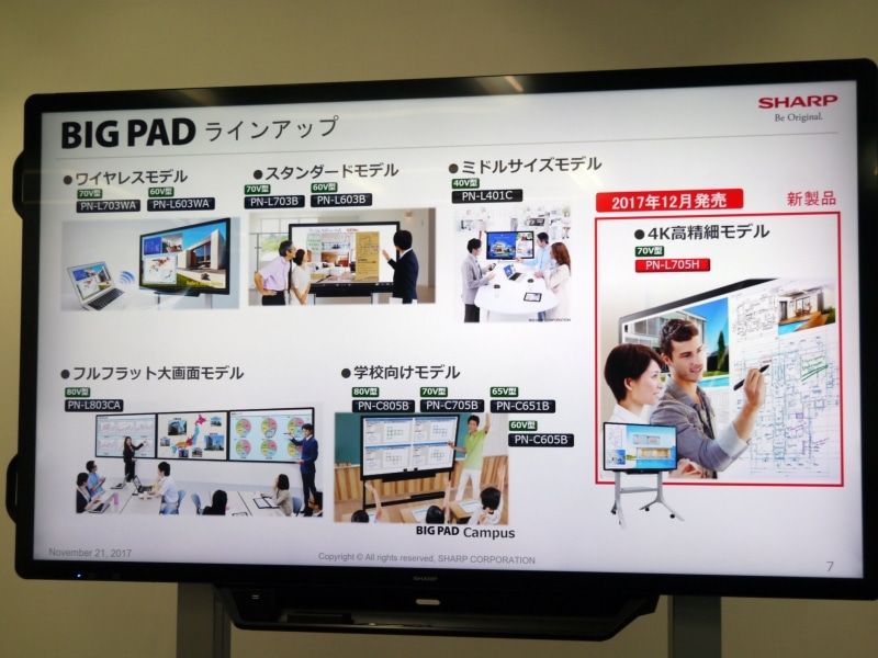 シャープ、タッチ操作/ペン対応の70型4K液晶