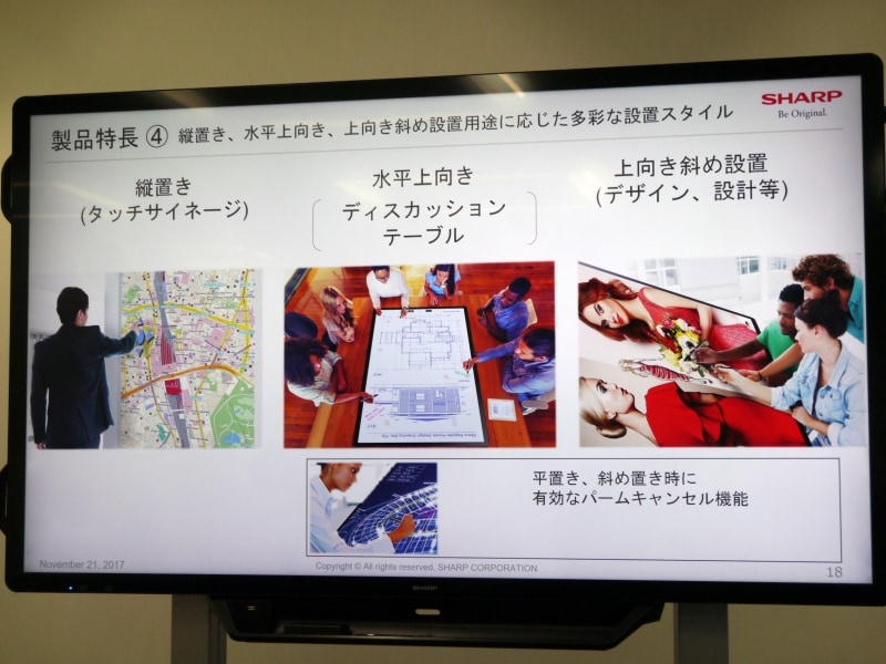 シャープ、タッチ操作/ペン対応の70型4K液晶