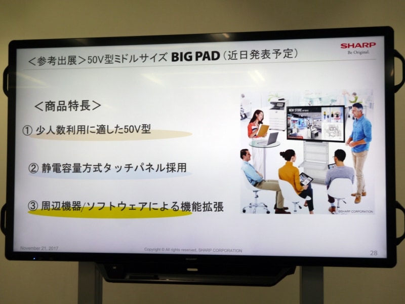 【詳報】シャープ、小規模会議室向けの40型タッチディスプレイ