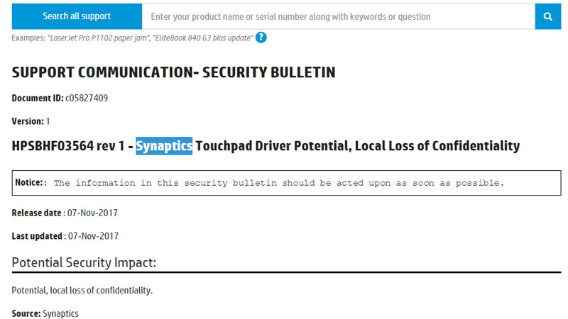 Synapticsのドライバにキーロガー、HPが対策へ
