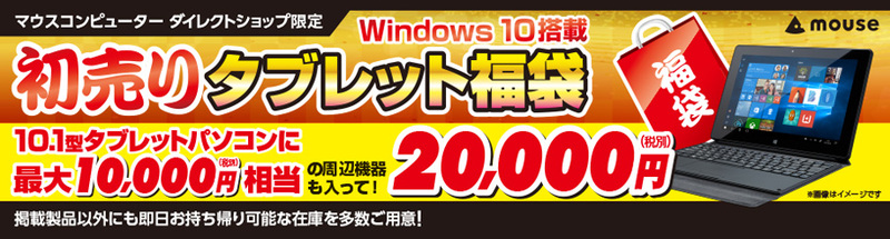 マウス、10.1型Windowsタブレット+1万円相当のアクセサリ入りで税別2万円の福袋など