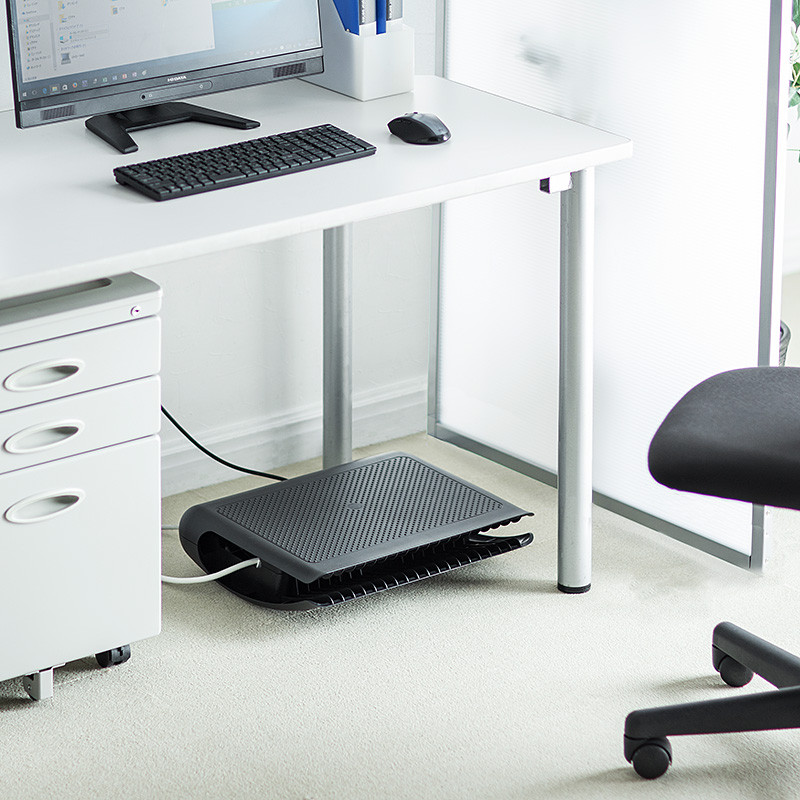 サンワサプライ、足下の電源ケーブルを隠せるタップ収納型フットレスト