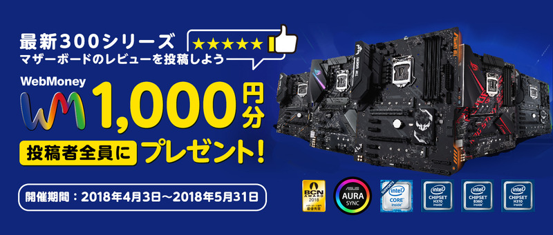 ASUS、Intel 300シリーズマザー購入+レビューでウェブマネー1,000円分プレゼント