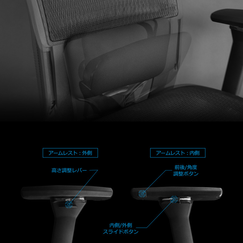 夏場でもオシリが蒸れないフルメッシュのゲーミングチェア