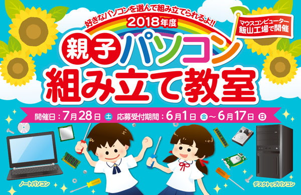 マウス、「2018年度親子パソコン組み立て教室」を7月28日に開催