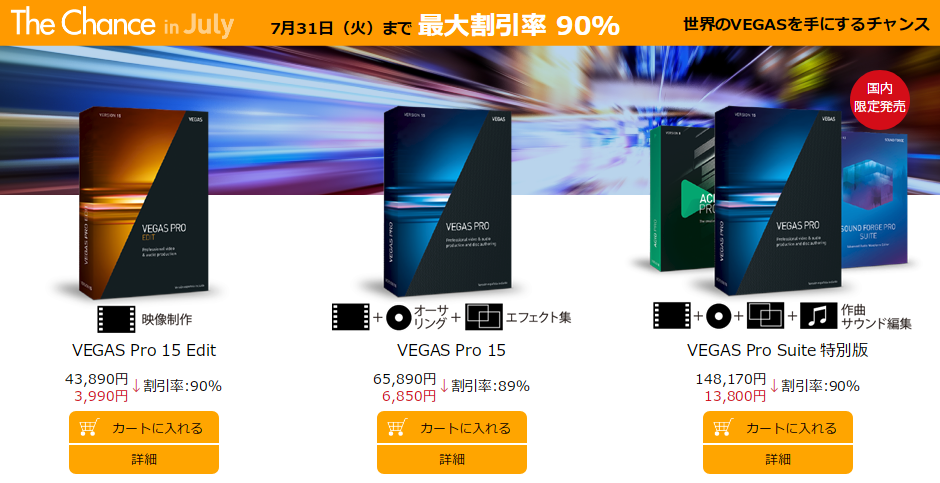 プロ向け動画/音楽編集ソフト「VEGAS Pro 15」登場。発売当日から約85%オフ