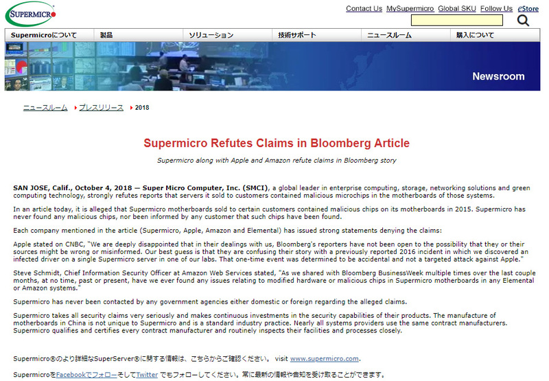 中国がSupermicroのマザボにハック用チップを埋め込んで製造とBloombergが報道