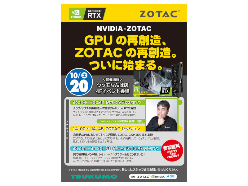 ZOTACとNVIDIA、20日に難波でGeForce RTXの解説イベントを開催