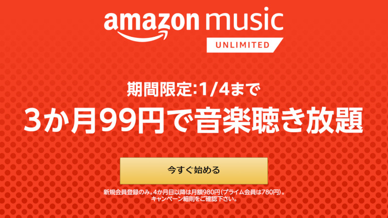 Amazon.co.jp、Amazon Music Unlimitedが3カ月99円で使えるキャンペーン