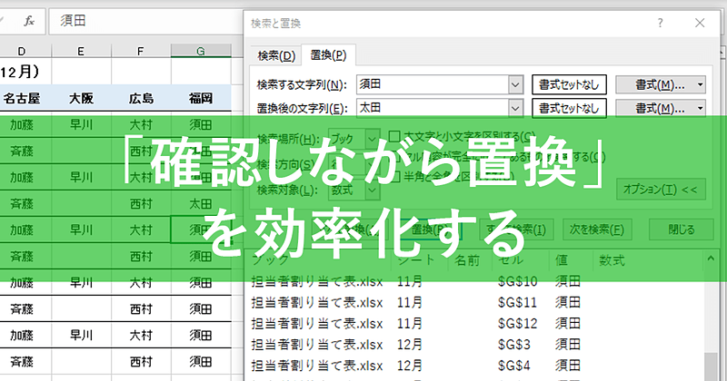 【エクセル時短】一括置換ができないときに。「すべて検索」を使えば確認しながら置換できる