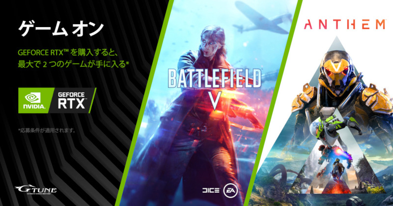 マウス、G-TuneのRTX搭載モデル購入でBFVやAnthemがもらえるキャンペーン