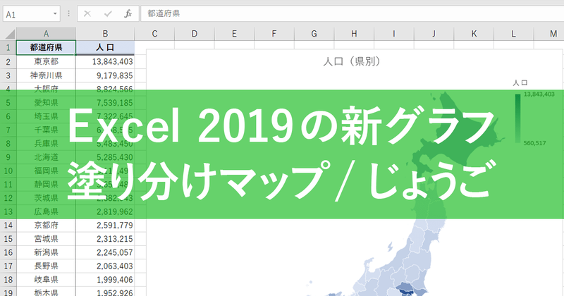 【エクセル時短】「塗り分けマップ」と「じょうご」。Excel 2019の新しいグラフを使う
