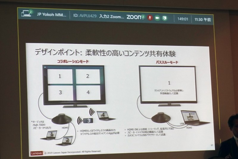 レノボ、オンライン会議のハードルを下げる大和研究所開発の「ThinkSmart Hub 700」