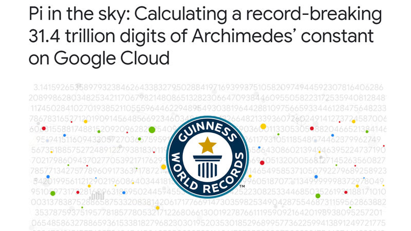 Google、クラウドで円周率31.4兆桁計算。ギネス更新