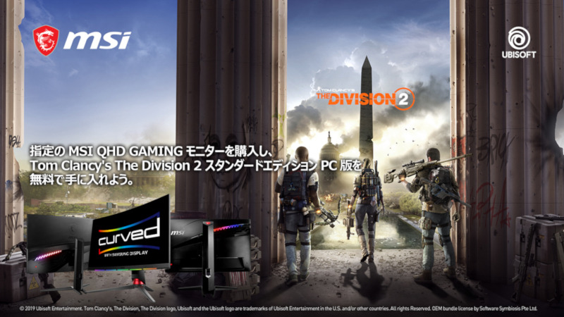 MSI製ゲーミング液晶購入でThe Division 2がもらえるキャンペーン