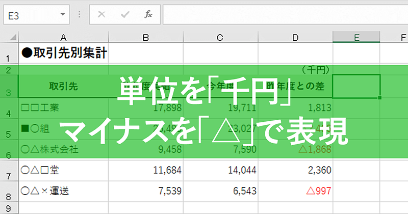 【エクセル時短】決算資料で必須! 単位を「千円」、マイナスを「△」で表現するテクニック