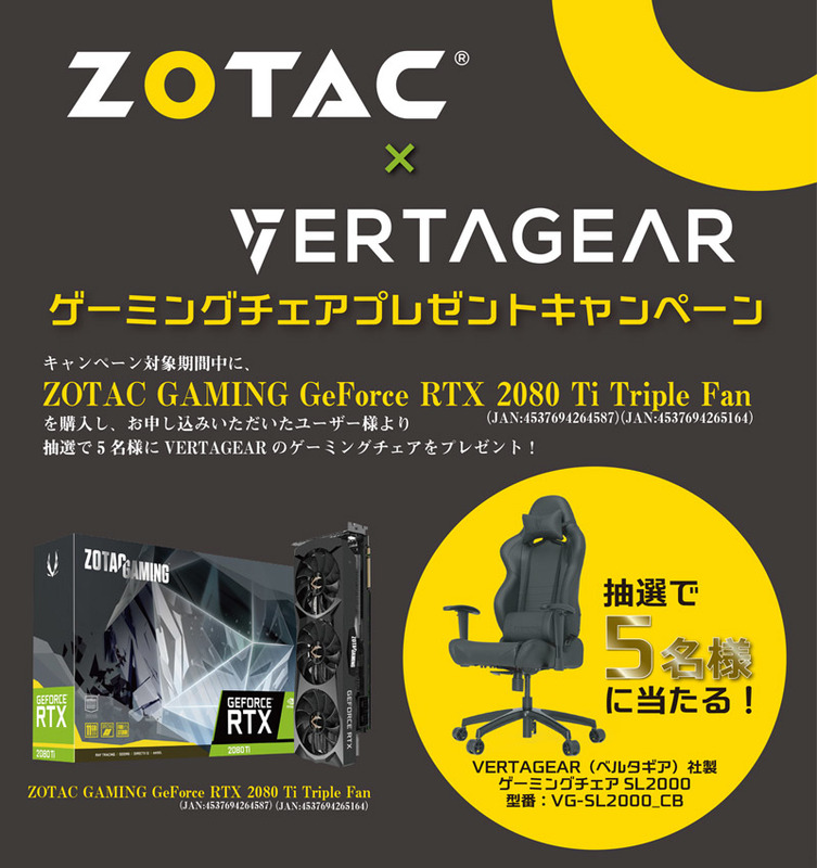ZOTAC製RTX 2080 Ti購入でゲーミングチェアが当たるキャンペーン