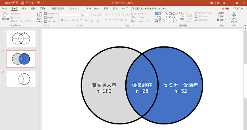 PowerPointで「ベン図」を作成する方法。重なりを抽出・色分けして共通点や相違点を視覚化する