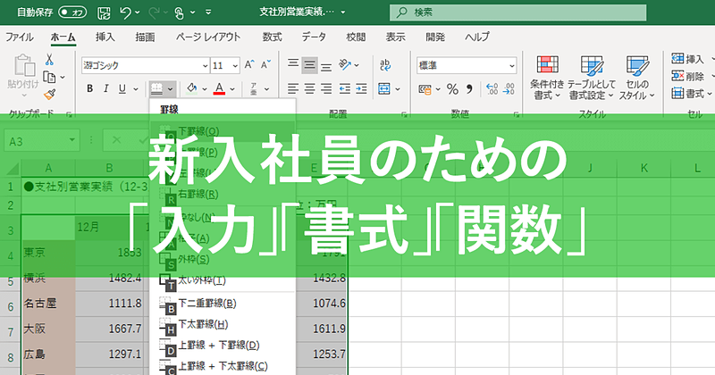 【エクセル時短】新入社員がすぐに身につけたい「入力」「書式」「関数」の厳選テクニック
