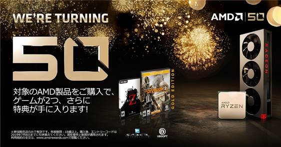 日本AMD、RyzenやRadeon購入でゲームをプレゼントする50周年記念キャンペーン