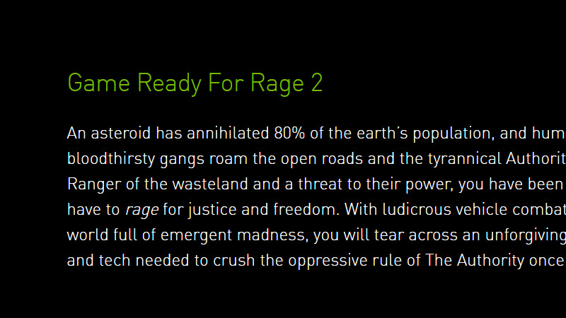 NVIDIA、Rage 2やTotal War: Three Kingdomsに向けたドライバ