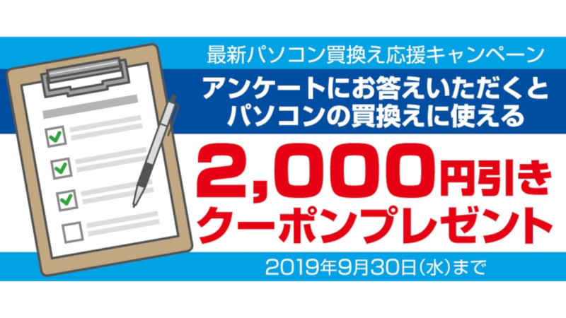 ドスパラ、アンケート回答で2千円引きクーポンがもらえるキャンペーン