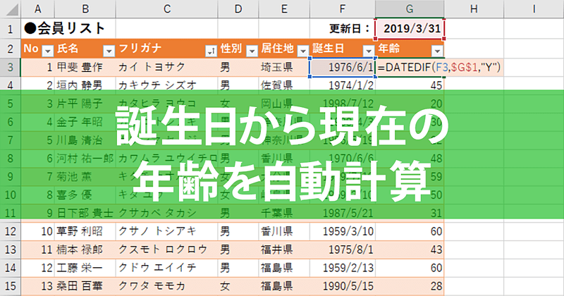 【エクセル時短】年齢を自動計算するには? 誕生日から現在の満年齢を関数で求める方法