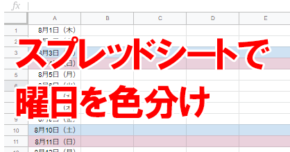 Googleスプレッドシートで作る予定表に曜日を表示し、土日を色分けする方法