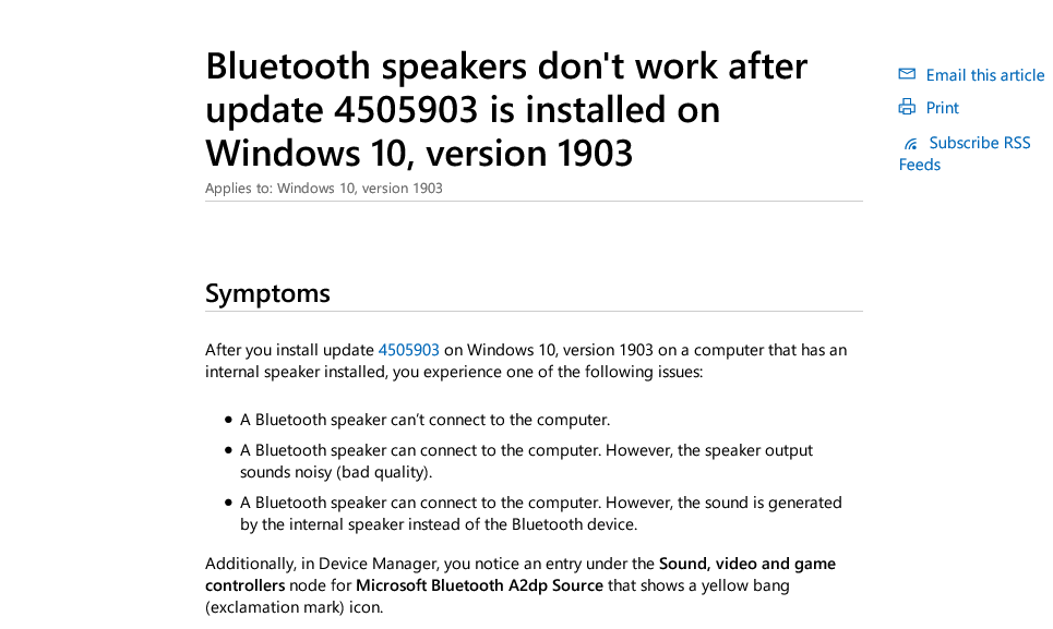 Windows 10パッチ「KB4505903」でBluetoothスピーカーが動作しなくなる問題