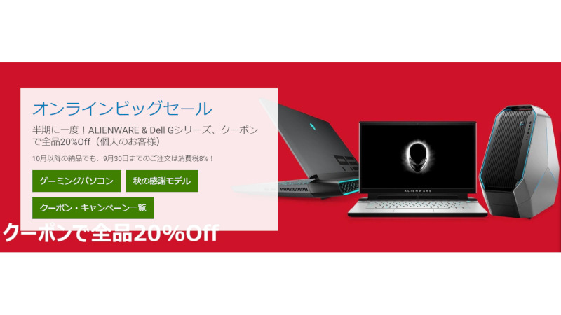 デル、ゲーミングPCが20%引きの「オンラインビッグセール」を開催